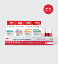 Das Starter-Pack ermöglicht es Ihnen, eine PODERM®-Lösung anzubieten, die auf die verschiedenen Nagelpathologien Ihrer Patienten abgestimmt ist. Es enthält: