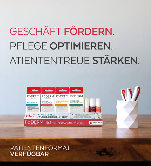 Das Poderm® Sehr trockene und geschädigte Füße Pro Serum repariert und nährt intensiv sehr trockene Füße für 24 Stunden. Es macht harte Haut weich, glättet raue Stellen und verleiht der Haut Geschmeidigkeit und Weichheit. Reich an Sheabutter und Bio-Ätherischem Süßorangenrindenöl fördert das Sehr trockene und geschädigte Füße Pro Serum die Hautregeneration, ohne sie zu überreizen, und beugt der Entstehung von Hornhaut vor.